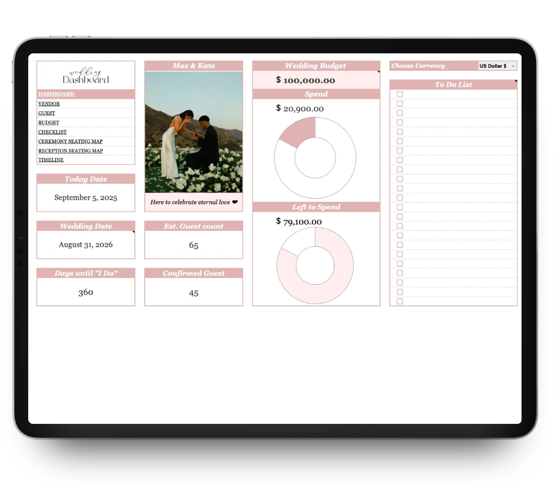 You can access your Digital Planner from any device — computer, smartphone, or tablet (iOS, Android, and Windows).You can even share it with your partner and plan together!
